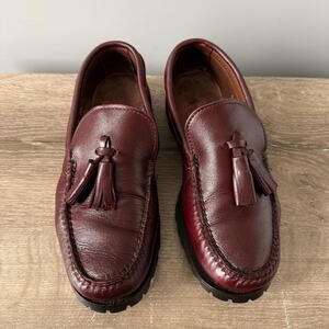 Russell Moccasin Shoes Mens Size 8 D Burgundy Tassel Loafers Vibram Made in USA