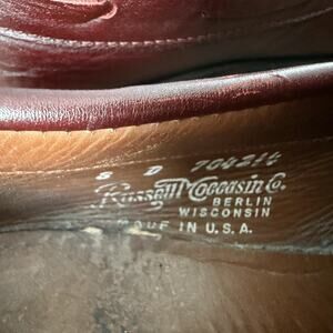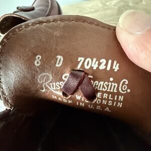 Subject/Markings: Insole stamped "Russell Moccasin Co. Berlin, Wisconsin Made in U.S.A." with size and code.