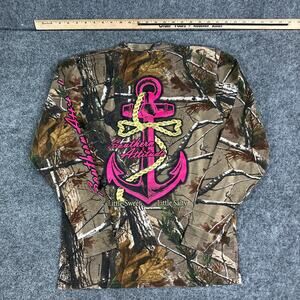 Russell Outdoors T-Shirt Womens M Camo Long Sleeve Pink Southern Logo Hunting