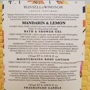 Russell & Windsor LONDON PERFUMERS LUXURY BATH SET Mandarin Lemon Candle Lotion