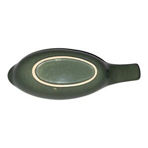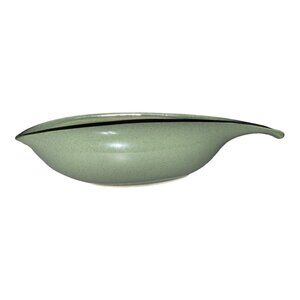 This vintage Russell Wright gravy boat features a sleek mid-century modern design, ideal for enhancing a dining setting. Its muted green color and streamlined form complement various table settings. Durable and timeless, this piece serves both aesthetic and functional purposes, making it a valuable addition to serveware collections.