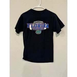 This black t-shirt proudly displays a bold graphic featuring a football, the word "FLORIDA," and the iconic Gator Head logo. Designed for fans of the Florida Gators, this short-sleeved tee offers a comfortable, classic fit. It's the perfect way to show your team spirit on game day or any casual occasion.