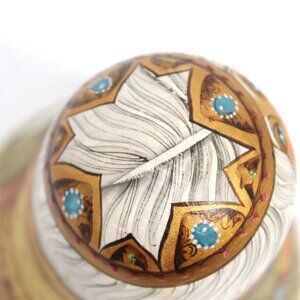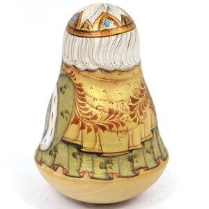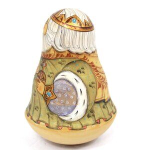 VINTAGE RUSSIAN FOLK ART ROLY POLY WOODEN HANDPAINTED MATRYOSHKA MR CHRISTMAS 1998 WITH CHIME GOLD WHITE; MOSCOW