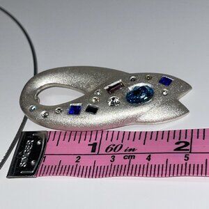 Russian Artist Etalon Jenavi Rhinestone Pendant Swirl Necklace Wire Cord N5