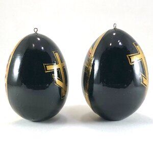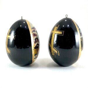 Russian Hand Painted Wooden Eggs Orthodox Christian black lacquer ornaments