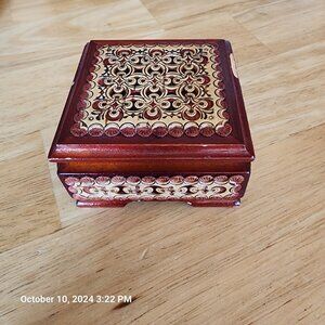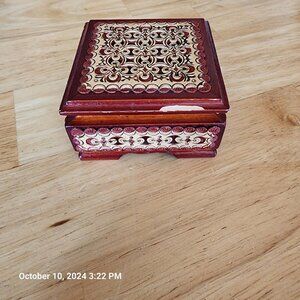Russian Hard Wood Birch Bark Hand Made Box Jewelry Box 3" Trinket Inlaid Floral
