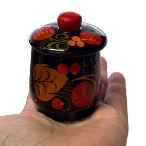 Russian Khokhloma Hand Painted Folk Art VTG 3Pc Lidded Spice Trinket Containers
