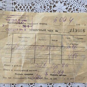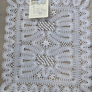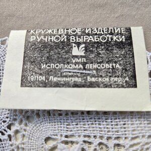 Russian Lace Doily Linen and Cotton Leningrad Trading Company. Has original tag on it and receipt. Hand wash only. Photos taken in natural light. Approximately 10"x12" The documents can be translated in Google translate.