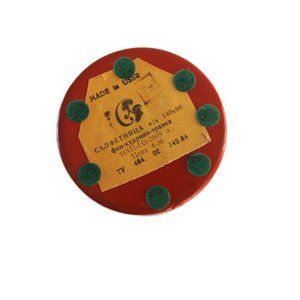 Vintage Russian lacquerware Khokhloma hand painted wood paper napkin holder. Soviet era, made in 1984. Good condition with a small stain on the base (see photo). 5.5" high, 3.75" in diameter.