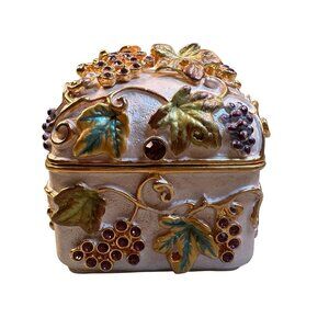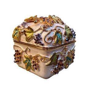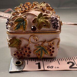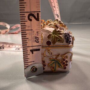 Russian Limoges Decorative Grape Leaf Design Trinket Box Rhinestone