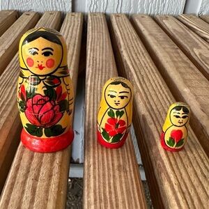 Russian Nesting Dolls Set 3 Matryoshka Peasant Doll Wooden Wood Vintage Russia