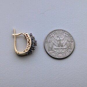 Russian Russia Solid 14K Yellow White Gold Diamond Cluster Pierced Earrings