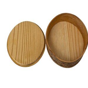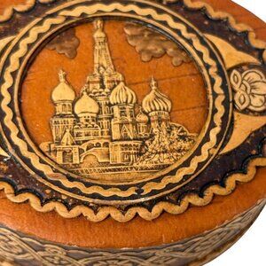 Russian Trinket Box Hand Made Birch Bark Oval Wood Ornate Church Design 3.5x2.75