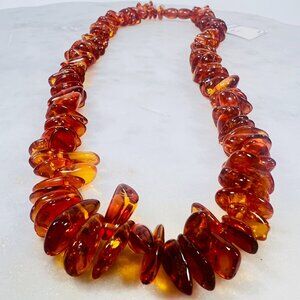 Some minor scuffs visible on a few beads, typical of natural amber. Length = 20 inches.