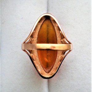 Russian USSR Original 14K 583 Rose Pink Gold Baltic Honey Amber Cocktail Ring