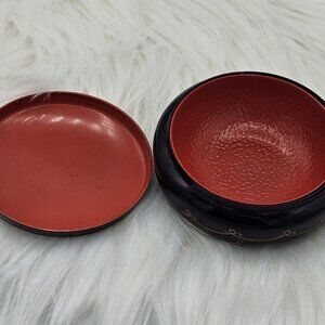 Beautiful black lacquered Ryssian hand painted fantasy lady on Sleigh in sky. Red paint inside.
