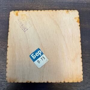 Russian Wooden Trinket Box Wood Burned Painted Soviet Union Stickers on Bottom