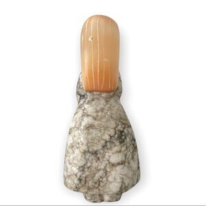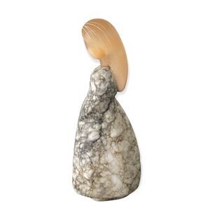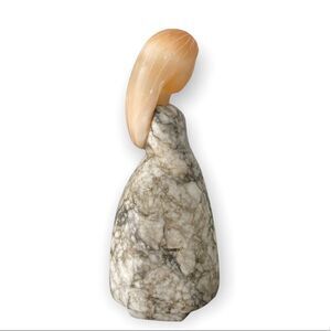 This is a Russian carved marble girl figurine from the 1970s. I believe the head and hair on the girl is selenite. The girl stands 4 5/8" high.