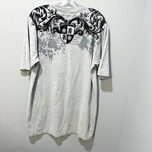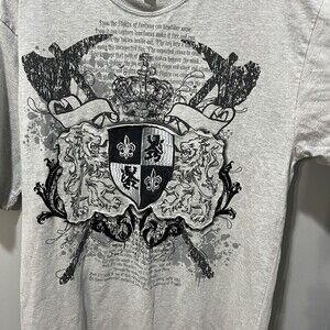 Russo Spirit Men Gray T Shirt Large Hip Hop Retro Embroidered Crest Grunge Crown