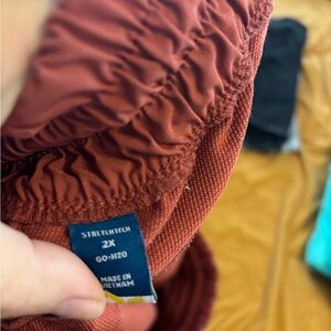 Comfortable rust color athletic skort with an elastic waistband and drawstring. These are so cute