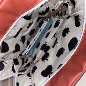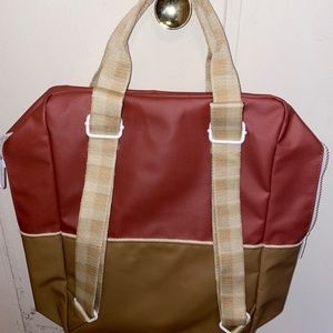 Rust colored backpack with the cutest interior detailing and water bottle strap (inside). Could be for kids and adults alike - never used.
