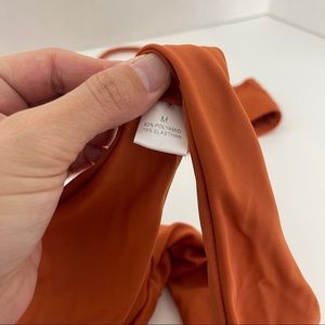 Rust colored bikini, size M (but I would say S) it’s super tiny and super cheeky 🥰