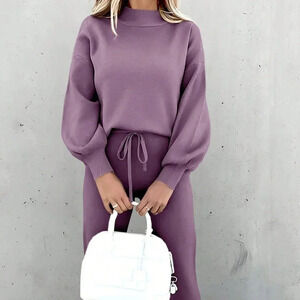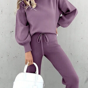 Rust Brown Casual Women's Loose Fit Long Sleeve Sweatshirt Set