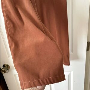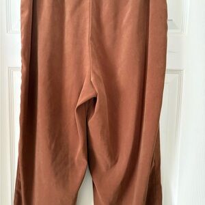 Stylish rust brown pants. Perfect for any occasion. No tags. Waist to hem 37 inches. Elastic waist 15 1/2 inches wide. Inseam 26 inches. Good condition. Size fits 14-18