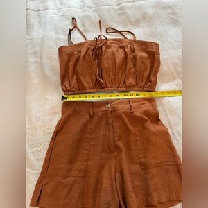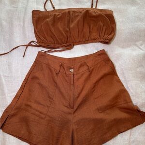 Stylish rust brown two-piece set. Includes a strapless top and matching shorts. Perfect for casual outings. NWOT new never worn