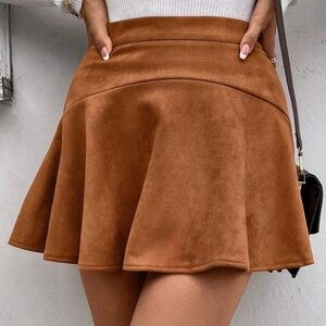 Rust Brown Vegan Suede Zipper Flared Mini Skirt
