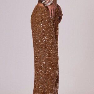 Rust Brown Women's Resort Drawstring Waist Sequin Relaxed Wide Leg pants