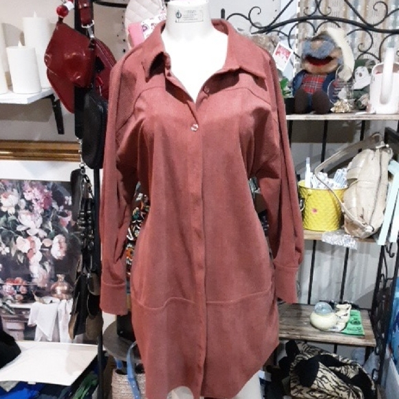 Stylish rust-colored button-up jacket. Perfect for casual outings.