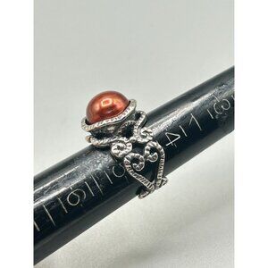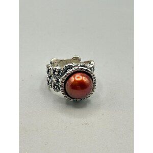 Rust Color Pearl Ring Size 4.5 Israel Didae 925 Ornate Filigree Pearl Cabochon
