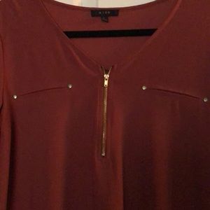 Long sleeved blouse. Dress up or down. Stretching material, very comfortable! Rust color. Zipper in front gives it style! Hardly worn, like new!