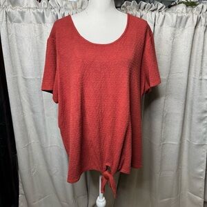 Rust Colored Relaxed Tie Front Short Sleeve Blouse 3X
