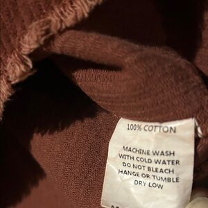 Stylish rust-colored corduroy jacket with button-up front. Features chest pockets and a classic collar.