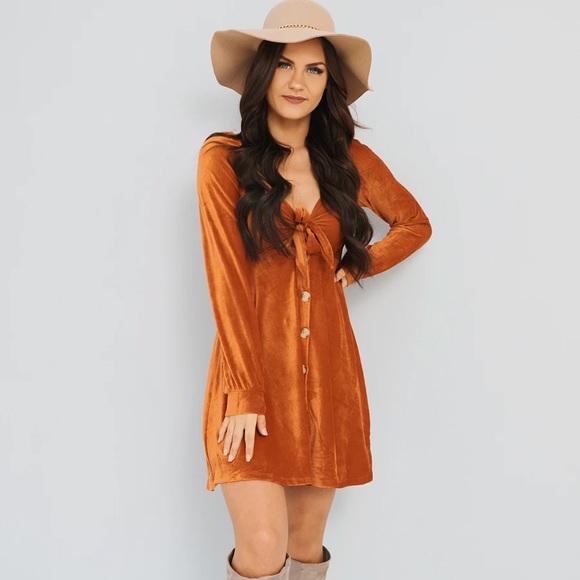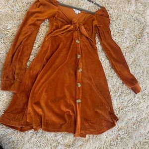 Beautiful fall rust color dress in super comfortable material. Functional buttons. Never worn!