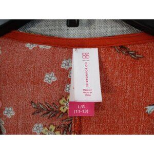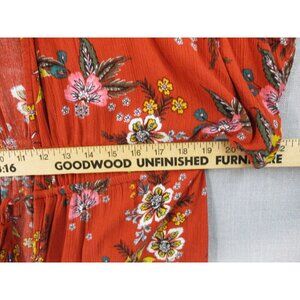 Rust Floral Kimono Sleeve Rayon Dress Large Boho Wrap Style