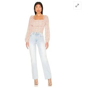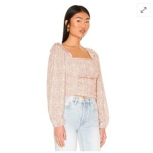 Floral top with smocked back + ruched bodice. Excellent condition.