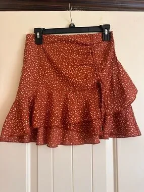 Rust Floral Ruffle Mini Skirt