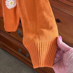 Embrace warmth and style with this rust cardigan adorned with delightful floral patterns. A perfect addition to your wardrobe for a touch of elegance.