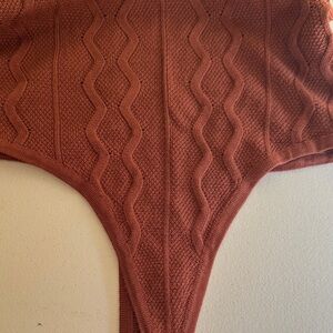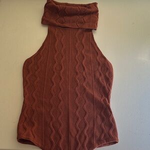 Elevate your style with this chic rust high neck sleeveless bodysuit. Perfect for layering or wearing on its own, this piece adds a touch of elegance to any outfit.