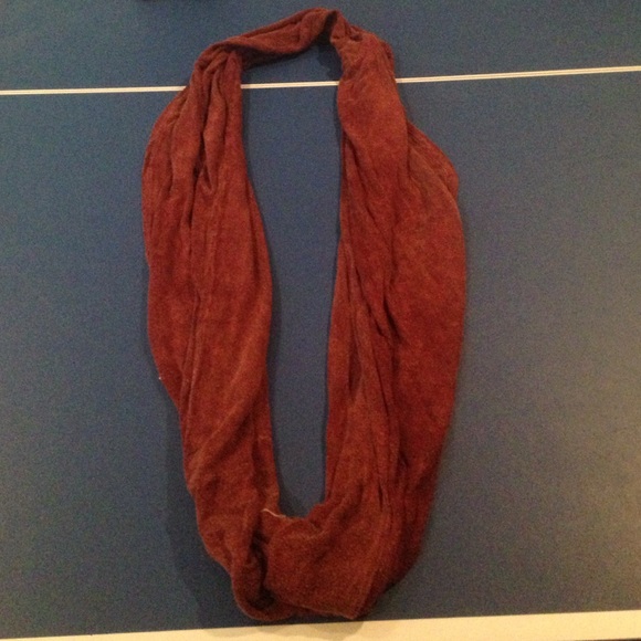Rust- colored infinity scarf from buckle.