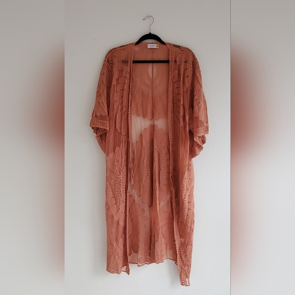 Elegant rust lace layer top with intricate patterns. Perfect for layering.
