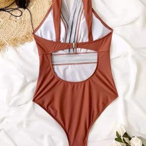 Rust Leopard Print Cut out Back One Piece Swim Monokini