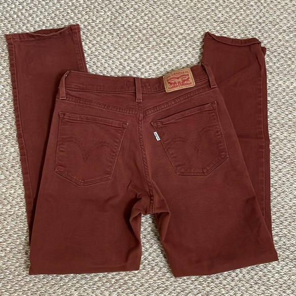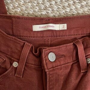 Dark brown/rust colored Levi’s. Classic Straight, size 2 (or 26x30 per tag).