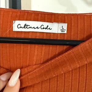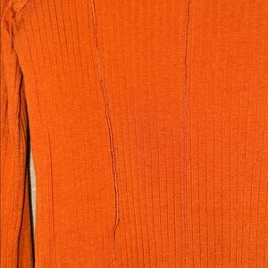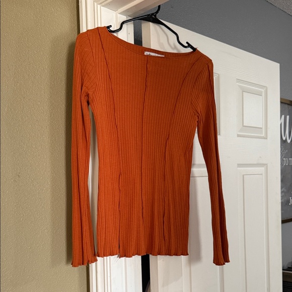 Add a touch of warmth to your wardrobe with this rust ribbed long sleeve top. Ideal for layering or wearing on its own.
