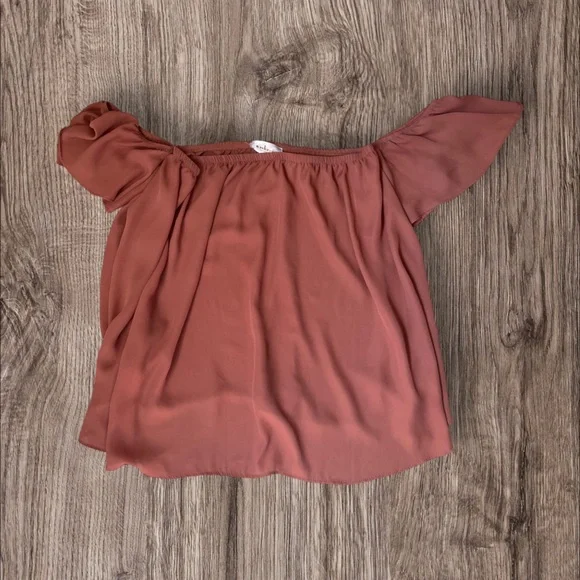 Stylish rust off-shoulder blouse with a flowy design. Perfect for casual outings.