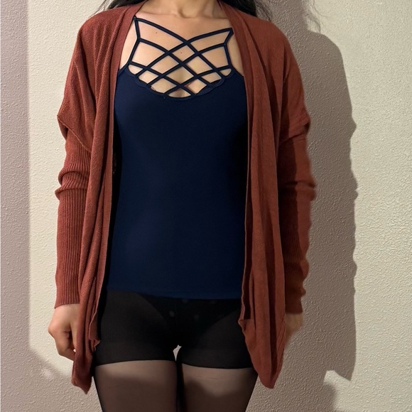Stay cozy and stylish with this rust open front cardigan. Perfect for layering over your favorite outfits.