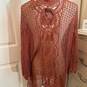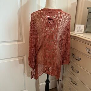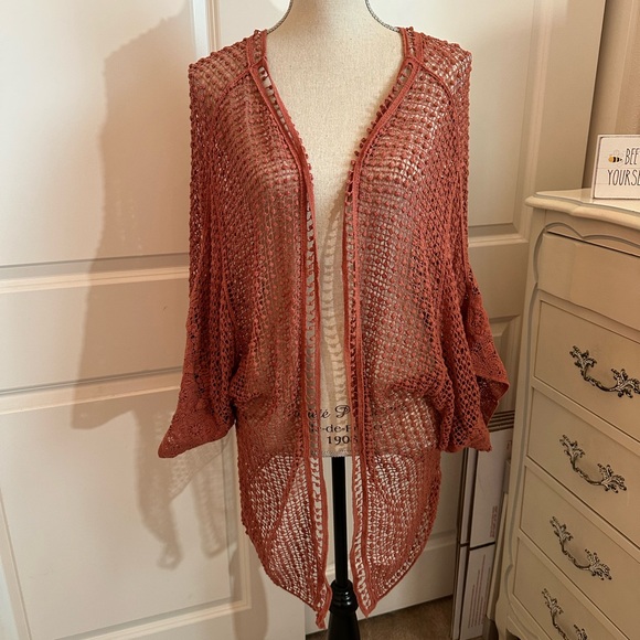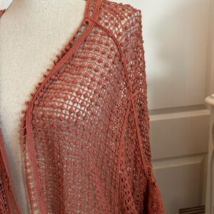 Stylish rust open knit cardigan. Perfect for layering.